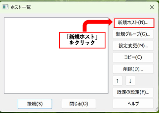 ホスト一覧より、接続するサーバの「ホストの設定名」を選択し、「接続」をクリックします。